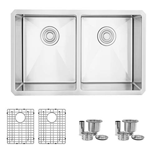 - PREMIUM MATERIAL: This undermount kitchen sink is made of scratch-resistant commercial grade premium 16 gauge stainless steel. The specially chosen stain finish will hide water spots and maintain a uniform patina finish as the sink ages. This undermount double bowl kitchen sink is corrosion and rust resistant and will not tarnish or fade